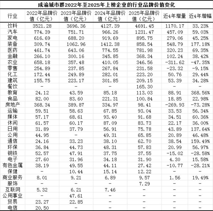 成渝上榜企业数量增幅第一,品牌价值增幅第二