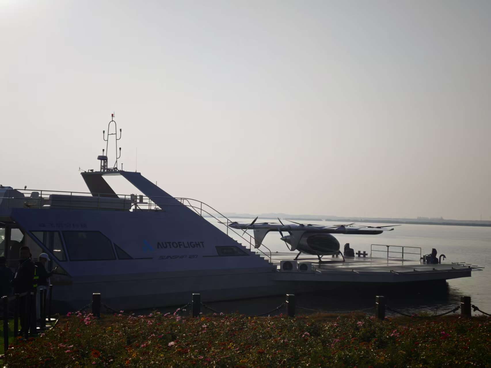 11月22日,峰飞航空在苏州昆山淀山湖上,首次展示了“海空一体低空经济解决方案”。该方案包括“水上机场”和eVTOL(电动垂直起降飞行器)。