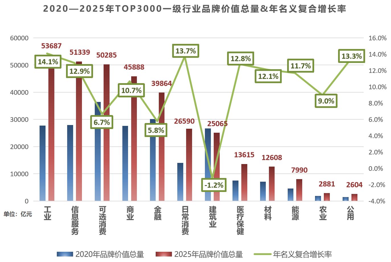2025各大行业品牌价值情况 数据来源:2025年蓝皮书